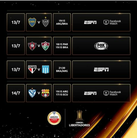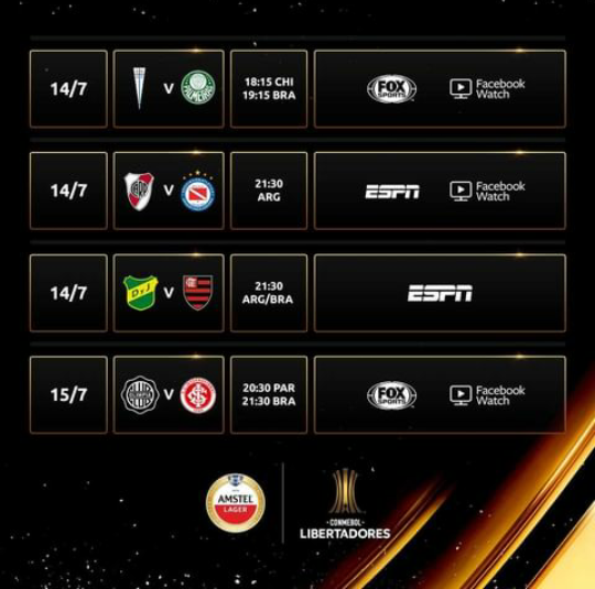El miércoles: Vélez jugará ante Barcelona de Ecuador desde las 19.15, mientras que River - Argentinos Juniors y Defensa y Justicia - Flamengo jugarán a las 21.30.