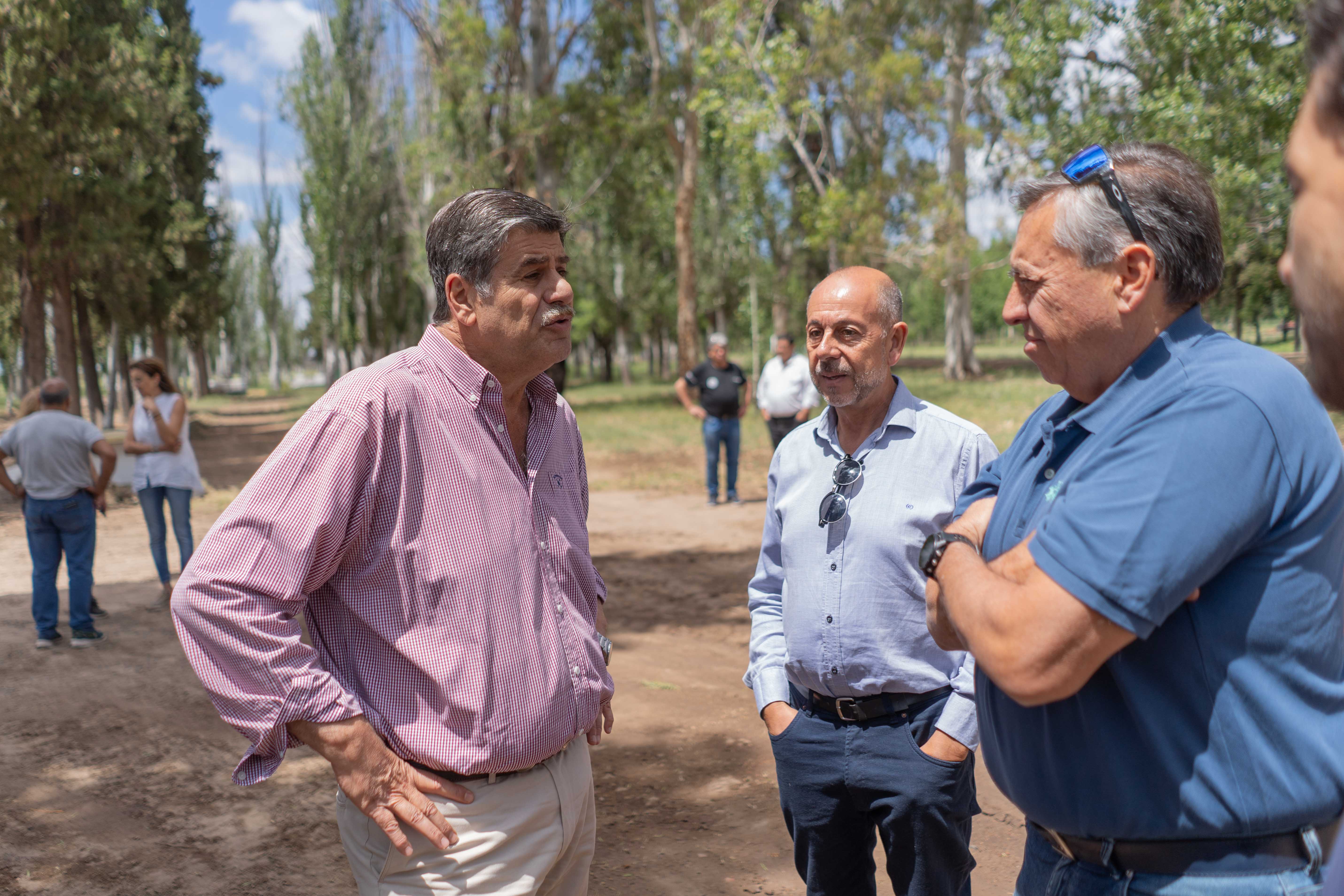 El director de Calidad y Servicios Turísticos del Ente Mendoza Turismo, Marcelo Reynoso, junto al superintendente de Irrigación, Sergio Marinelli, y el intendente Mario Abed, visitaron las obras de la nueva playa del departamento de Junín. Este sitio se localiza en el camping El Pinar de Junín, del departamento del Este.