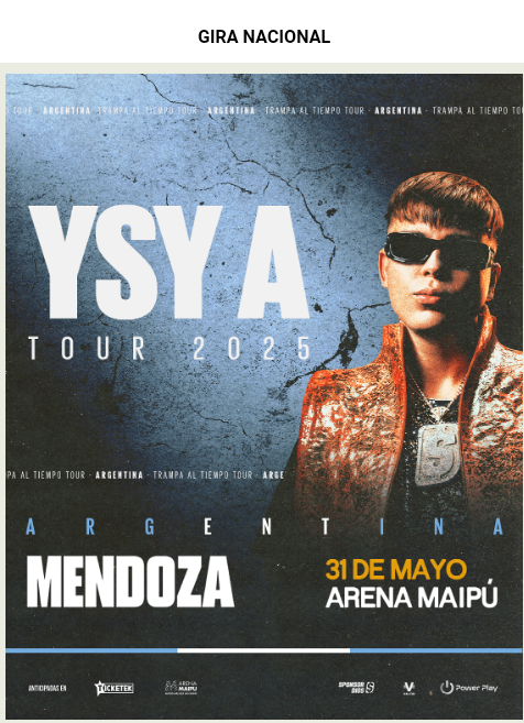 YSY A anunció nuevas fechas de Trampa al Tiempo Tour. El joven artista y fenómeno único del trap vuelve a Mendoza, en el marco de su gira 2025. El sábado 31 de mayo, en el Arena Maipú Stadium. Las entradas están disponibles en Ticketek.com.