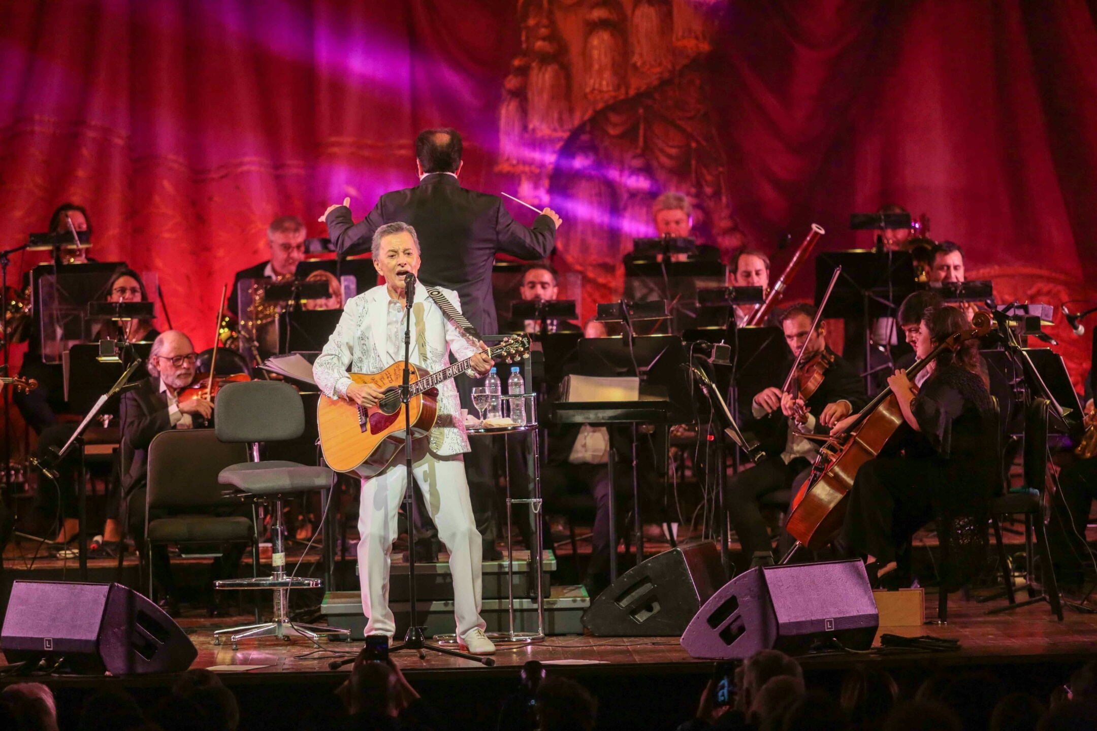 Con una formación sinfónica y acompañado por su entrañable amigo Lalo Fransen, fueron desfilando muchos de sus clásicos como “Un muchacho como yo”, “Viva la vida”, “Corazón contento”, “Despeinada”, “La felicidad”, entre otros.
