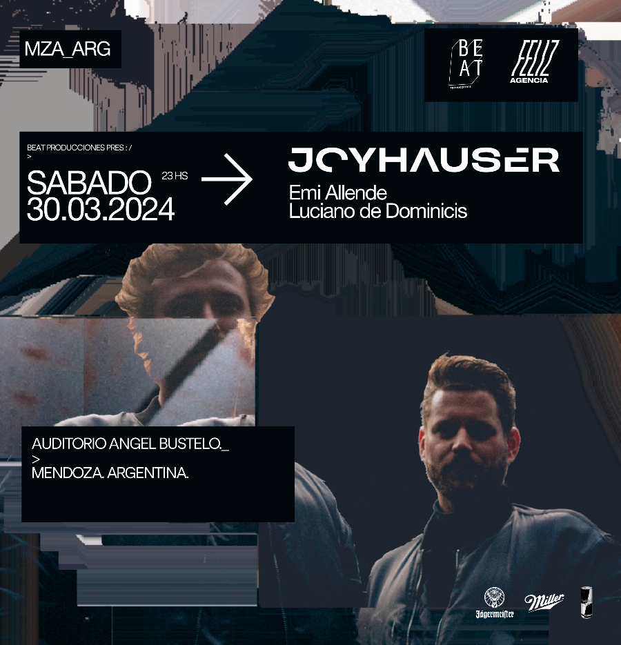 Por primera vez en Mendoza serán los grandes invitados en lo que será el último encuentro con el techno, en el auditorio Ángel Bustelo. Además los DJ 's locales Emi Allende y Luciano de Dominici abrirán el juego, en una noche imperdible para los amantes de la música electrónica. Las entradas para la presentación de Joyhauser están disponibles en Quickentry.com.