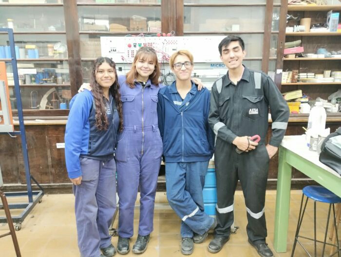 “Afortunadamente y con una emoción muy grande, los estudiantes Abigaíl Palacios, Agustín León, Ana Melendres Ana y Nahuel Oliva, de 6º año de la especialidad de Electricidad de la institución, junto con otro grupo de la especialidad de Industria de Proceso, acreditaron su participación en la instancia nacional.