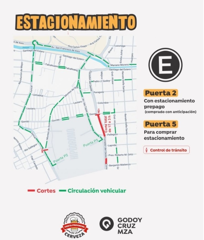 La Fiesta Provincial de la Cerveza se realizará el viernes 5, sábado 6 y domingo 7 de diciembre en el Hipódromo de Mendoza. Es por eso que habrá cortes de tránsito para ordenar la circulación vehicular en los horarios del evento.