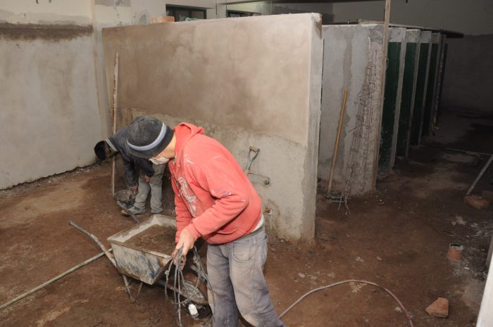 En este sentido, hace poco más de un mes comenzó a realizarse la actual refacción, que incluye el arreglo de toda la base del sistema cloacal, colocación de pisos nuevos y revestimientos cerámicos en los muros. Además, se está haciendo un refuerzo estructural en las paredes, debido a que sufrieron grietas y fisuras debido al hundimiento del suelo.