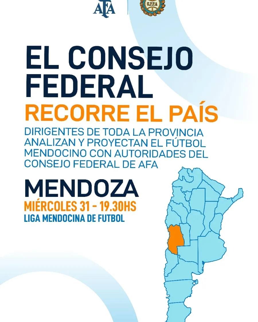 La Liga Mendocina Fútbol fue visitada por miembros del Consejo Federal de AFA, esta delegación estuvo encabezada por su secretario general Javier Treuque y por Sergio Pezzotta, miembro de la Comisión de árbitros de AFA.