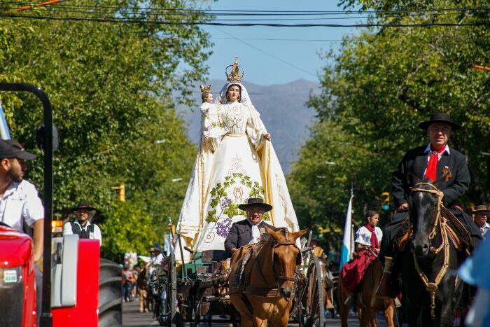 Una vez que el Gobernador, Rodolfo Suarez, autorizó el comienzo del Carrusel, la banda de la Policía de Mendoza tocó el Himno Nacional y dio paso a la Virgen de la Carrodilla, escoltada por la Federación Gaucha General San Martín, con sus gauchos, chinas, sulquis y caballos; mientras que Griselda López Zalba y Mariano Leotta cantaban Virgen de la Carrodilla.