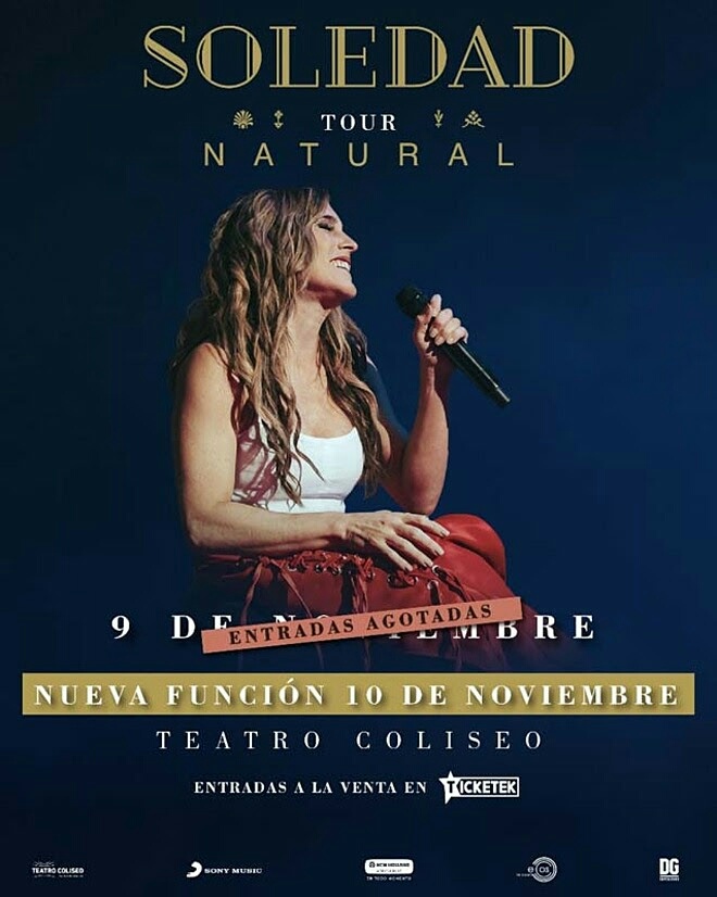 A poco de haber comenzado la gira nacional “Natural”, donde presenta su nuevo álbum y que tuvo su puntapié inicial con serie de exitosos conciertos a sala llena en el Teatro Coliseo, Soledad (con 5 teatros Sold Out) la voz de la música popular y de raíz de nuestro país anuncia nuevas funciones para el mes de noviembre