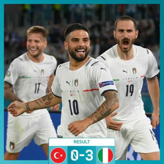 La selección de Italia saltó en la Eurocopa con un triunfo por 3-0 contra la de Turquía en el estadio Olímpico de Roma, con una presentación autoritaria por un gol en contra de Merih Demiral y goles de Ciro Immobile y Lorenzo Insigne.