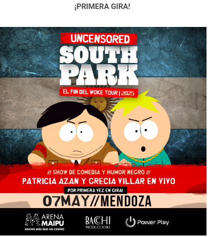La primera gira internacional de South Park llega a Mendoza. El show de comedia y humor negro se presentará en la Arena Maipú.