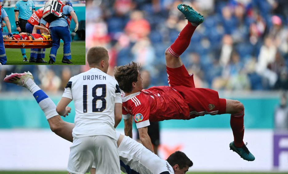 En el juego entre Rusia y Finlandia se paralizaron las miradas luego de que el lateral ruso Mario Fernandes soportara una dura caída. Salió del estadio en camilla, con un cuello ortopédico, y fue hospitalizado. "Mario Fernandes tiene una sospecha de lesión en lo alto de la columna vertebral. Fue llevado a un hospital de San Petersburgo para ser examinado con mayor precisión”, comunicó en primera instancia la selección rusa, pero tras los análisis, se volvió a pronunciar para llevar paz sobre el estado de salud del futbolista.