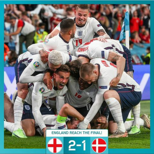 Inglaterra eliminó 2 a 1 a Dinamarca en el alargue de la semifinal de la Eurocopa 2021 -se jugó en Wembley- y está en la final, donde enfrentará a Italia (quien superó por penales a España).