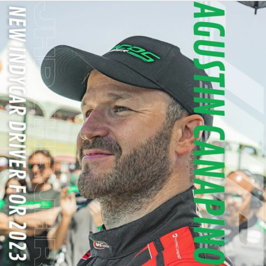 Agustín Canapino, múltiple campeón del automovilismo local, fue difundido como piloto oficial del Juncos Hollinger Racing para toda la temporada del IndyCar, máxima división del deporte motor en los Estados Unidos.