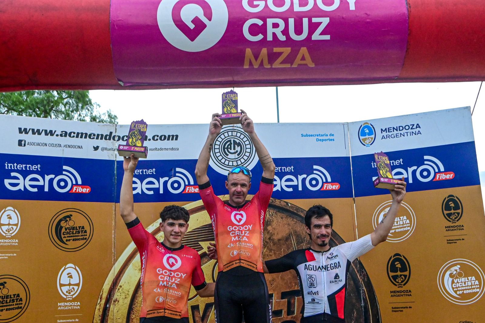La etapa fue neutralizada durante una hora por inconvenientes en la señalización y el ciclista de Chacabuco cerró los 137km. escoltado por su compañero de equipo Facundo Ambrossi, quien ganó las dos metas sprint, y por el chileno Elías Tello (Agua Negra Racing).