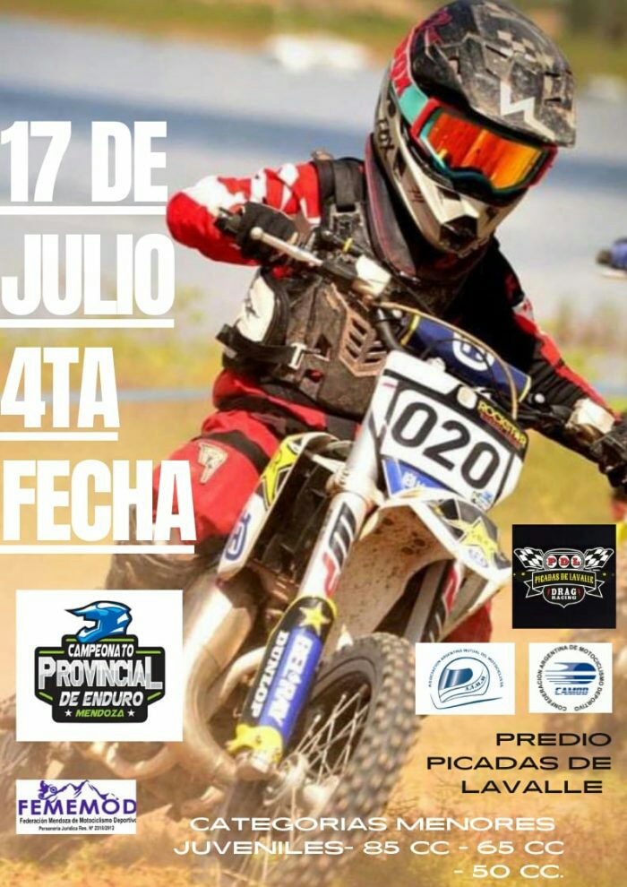 El 17 de julio, en el predio Picadas de Lavalle, se llevará a cabo la cuarta fecha del certamen de las divisionales menores, en una prueba que será fiscalizada por la Federación Mendocina de Motociclismo Deportivo