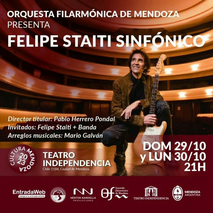 Mendoza será testigo de un concierto histórico, a cargo de uno de los músicos mendocinos más importantes de la escena nacional y local. Felipe Staiti, presenta su Concierto Sinfónico, de solo guitarra, junto a la Orquesta Filarmónica de Mendoza, en una fusión de lujo.