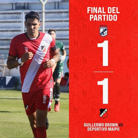 Deportivo Maipú igualó 1 a 1 con Guillermo Brown, en Puerto Madryn, en un juego correspondiente a la 5ta fecha de la Zona A del torneo de la Primera Nacional