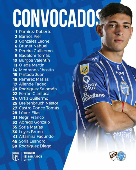 La dupla técnica conformada por Favio Orsi y Sergio Gómez confirmó la lista de los jugadores convocados que estarán ante el Calamar, donde figuran dos refuerzos que llegaron, se trata del arquero Diego Rodríguez y del defensor Pier Barrios. Mientras que el delantero Cristian Chávez estará en Mendoza. Son 25 los jugadores citados por los entrenadores que conducen a Godoy Cruz.