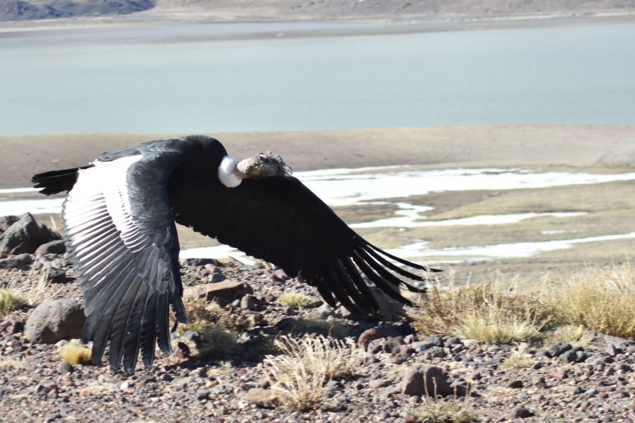 Uno de ellos, un macho adulto, fue rescatado en una finca en las afueras de Chos Malal, sufriendo un grave cuadro de intoxicación, presumiblemente por plomo. A pesar de su crítico estado, fue estabilizado por el personal de la provincia de Neuquén con el apoyo de la Secretaría de Ambiente y Ordenamiento Territorial de Mendoza que aportó los insumos de la Estrategia Nacional contra Cebos Tóxicos y posteriormente liberado en Parque Provincial El Tromen de Neuquén.
