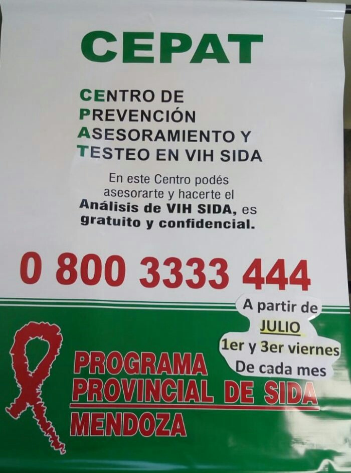 Comenzó a funcionar en Tunuyán el Centro de Prevención, Asesoramiento y Testeo de VIH (CEPAT). Realiza test de manera rápida, gratuita y confidencial. Los equipos de salud del Gobierno de Mendoza en los centros de salud de Tunuyán llevan adelante el funcionamiento del Centro de Prevención, Asesoramiento y Testeo de VIH (CEPAT). Ya presta servicios en el Centro de Salud 171 Miguel Manzano, el primer y el tercer viernes de cada mes. Está destinado a distintas personas: a embarazadas, a personas que necesiten realizarse el testeo, consultar por dudas sobre el VIH-sida o retirar material informativo. Es importante recordar que con el test rápido de VIH-Sida se obtiene el resultado en menos de una hora, siendo este confidencial, gratuito, rápido y voluntario. Una vez que se hace el test, si da negativo, permite sacarse la duda y, si da positivo, da acceso a atención médica y a comenzar un tratamiento. “La idea es que la mayor cantidad de gente posible, que haya tenido relaciones sexuales sin preservativo, lo que representan la mayor causa de contagio y desconoce su serología, pueda sacarse la duda de forma rápida y confidencial”, explicó Verónica Atencio, coordinadora del Área Sanitaria de Tunuyán. Además, dijo que para hacerse el test “no hace falta estar en ayunas” e informó que lo pueden hacer “a partir de los 14 años de edad”. Agregó que “los chicos pueden ir solos a hacerse el test”. La funcionaria provincial destacó que en todos los centros de salud de Tunuyán hay lugares donde se pueden retirar preservativos sin ningún pedido. En este caso, el CEPAT es gestionado también con ayuda de la Universidad Maza, que colabora con el Área Sanitaria de Tunuyán. Constituye un espacio donde se promueve el testeo voluntario y la realización del proceso diagnóstico para VIH. Por tal motivo, su funcionamiento es muy importante para toda la comunidad de Tunuyán. Estos centros de ayuda, control y asesoramiento son parte del Programa Provincial de Sida