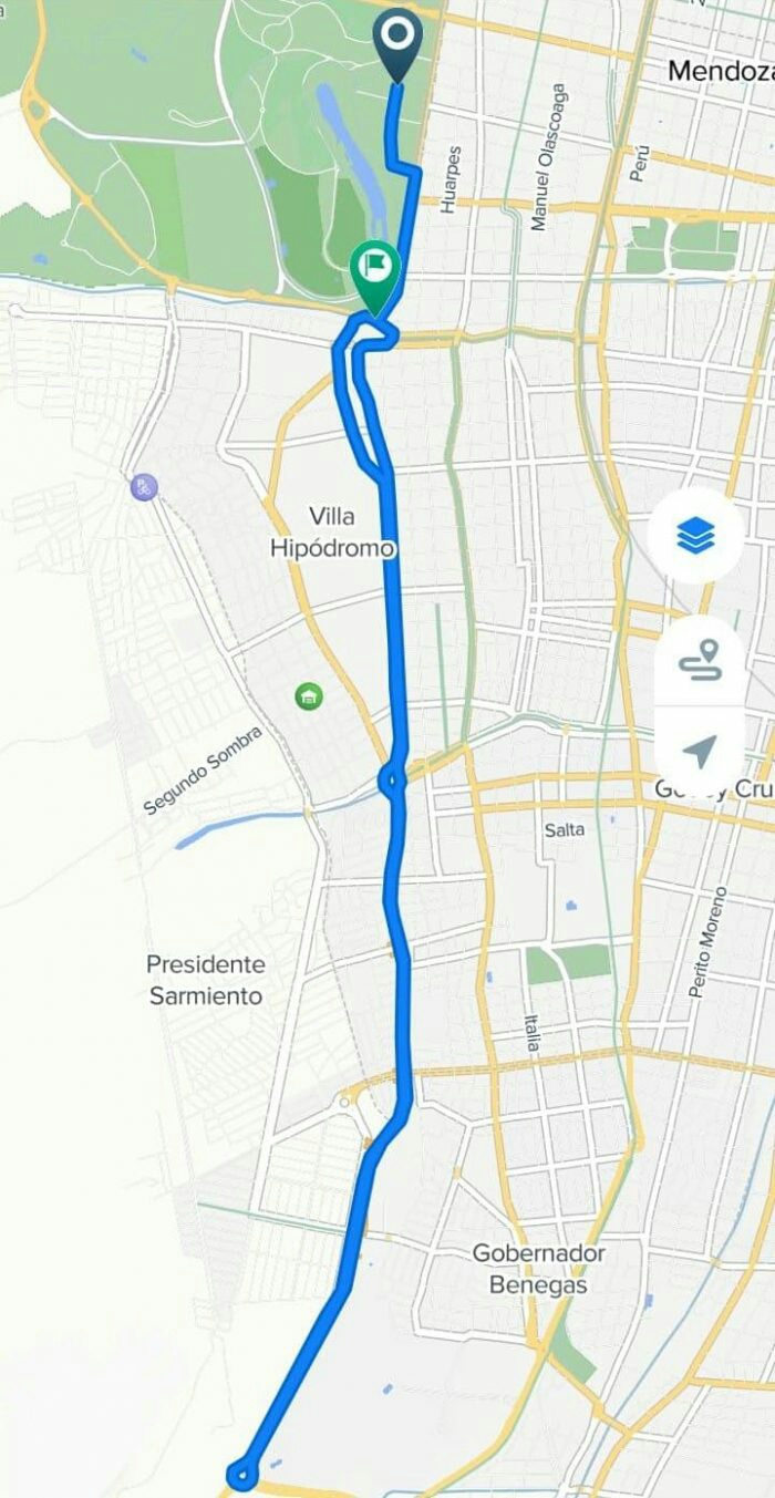 Largada sobre Av. Las Tipas (puertas del club organizador) hacia el sur,a la izquierda, hasta calle Boulogne Sur Mer,continúa por Boulogne Sur Mer hasta Av. San Francisco de Asís,desde ahí por Av. Las Tipas,Ingreso al Corredor del Oeste,continúa hacía el sur hasta Rotonda de Servicios Públicos,tomar salida hacia el Corredor del Oeste,continúa hacia el sur hasta la Rotonda de Palmares,desde allí hacia el norte por Corredor Oeste hasta llegar a Boulogne Sur Mer y luego hasta Av. Mariano Moreno, Santiago del Estero y Av. Las Tipas.
