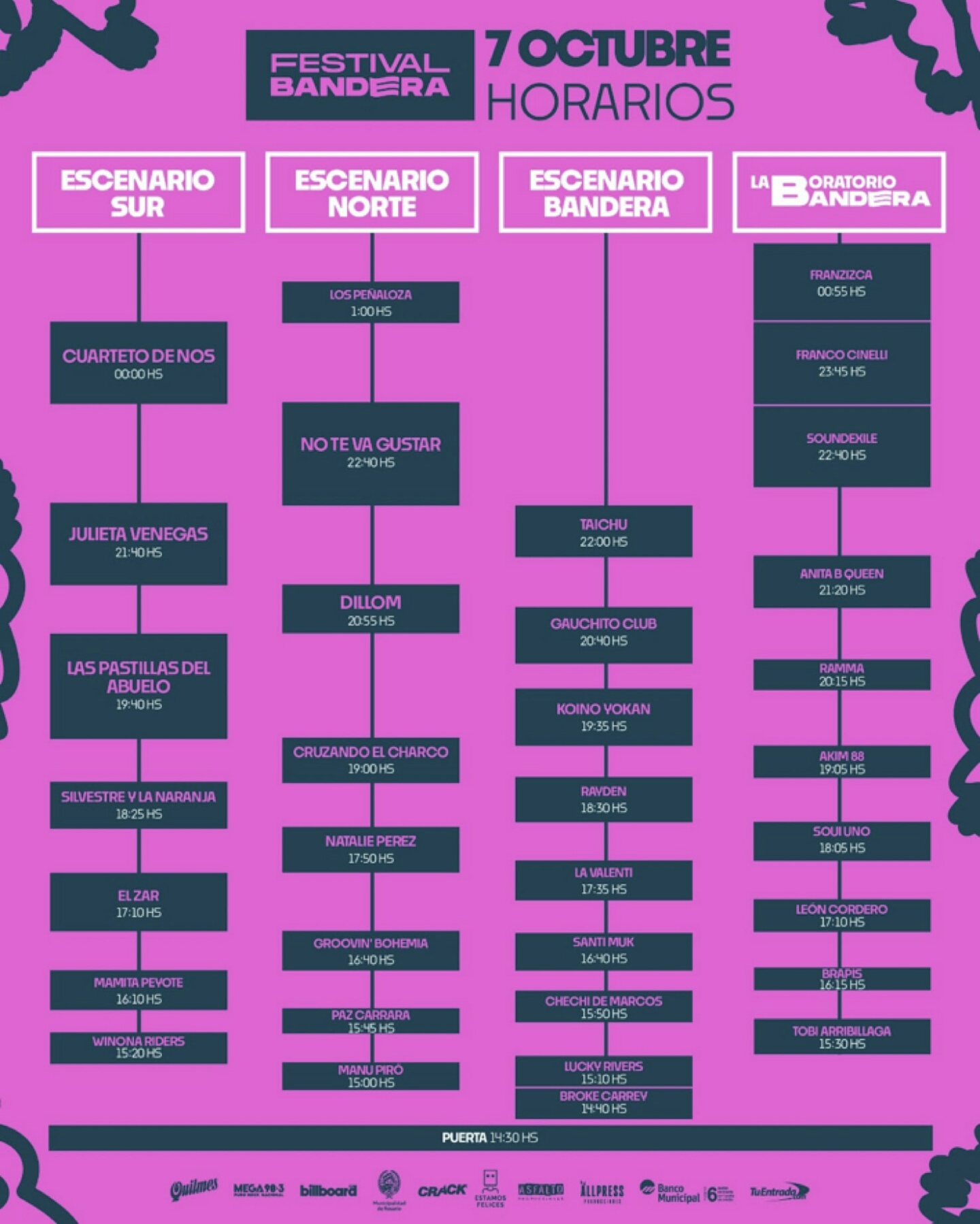 - Te esperamos con 4 escenarios. Revisá los horarios para no perderte a tus artistas favoritos y organizar tu día