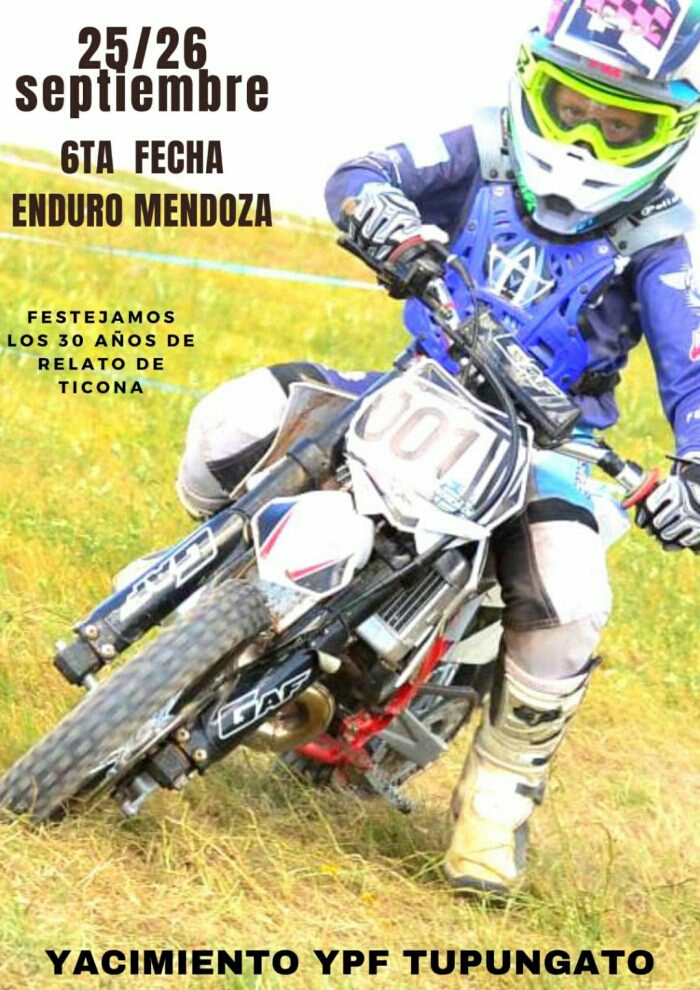 El Campeonato Provincial de Enduro llevará a cabo la sexta fecha del certamen el próximo 25 y 26, en las inmediaciones del Yacimiento YPF, en Tupungato. Tendrá fiscalización de la Federación Mendocina de Motociclismo Deportivo (Fememod) y el apoyo de la Subsecretaría de Deportes.