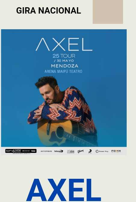 Recientemente nominado a los Premios Gardel con su álbum “Vuelve”, Axel llega a Mendoza en el marco de su “25 Tour”, la gira con la que celebra sus 25 años de trayectoria musical.