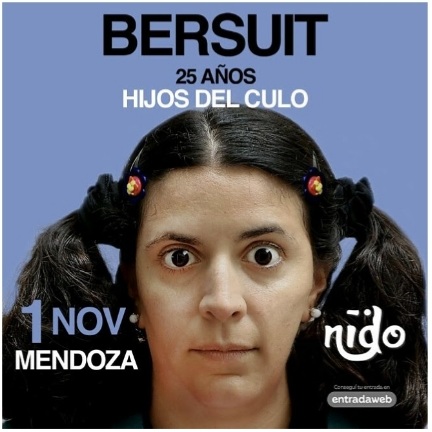 El sábado 1 de noviembre, a las 21 h, Bersuit llega a Nido Club (Mitre y esq. Godoy Cruz, Cdad.) para celebrar los 25 años de "Hijos del Culo", uno de sus discos más icónicos, y una placa emblemática del rock nacional en el nuevo siglo. Se viene una noche imperdible para revivir los himnos que marcaron a toda una generación y cantar junto a una de las bandas más grandes del rock argentino.