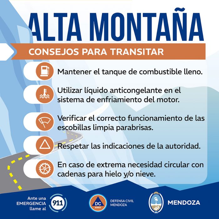 Para quienes habitan en la zona cordillerana de Mendoza, se señala que “es importante que los residentes se preparen adecuadamente siguiendo atentamente las instrucciones de las autoridades locales y las actualizaciones del pronóstico”.
