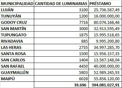 El Gobierno de Mendoza, en el marco de lo dispuesto por el artículo 42 de la Ley 9278, ha dispuesto a través del Decreto 1312/21 otorgar créditos a los municipios que presenten proyectos para mejorar la eficiencia energética.