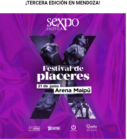 La tercera edición de la SexpoErótica enciende el invierno mendocino. El festival de Placeres con casi veinte años de historia regresa a la provincia, el sábado 21 de junio, en el Estadio Arena Maipú. Las entradas están disponibles en Ticketek.com.ar y boletería del Arena (solo en efectivo).