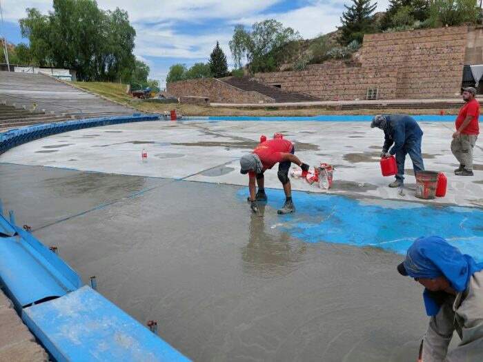 “Los trabajos marchan según lo planeado. Hay reparaciones internas, como los baños y el sistema de cámaras de seguridad, y externas, y la cubierta de techo de los camarines, que presenta problemas de filtración. También daremos respuesta definitiva con una muy buena impermeabilización a la fuente y el reacondicionamiento de revestimientos de fachada, entre otros trabajos”, detalló Mario Isgro, ministro de Planificación e Infraestructura.