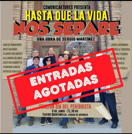 Están confirmadas, además, otras fecha: viernes 30 de junio en el Teatro Imperial de Maipú; domingo 2 de julio, celebrando el Día del Locutor/a, en el teatro Colón de Palmira, San Martín; 5 de agosto y 16 de septiembre en el Centro Pascual Lauriente de Guaymallén, para quienes estén interesados en vivir la experiencia de “Hasta que la vida nos separe”.