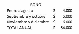 En el caso de un empleado público que en diciembre de 2020 cobró $100.000, en marzo de 2021 pasó a cobrar $111.000 ($4.000 del bono más el 7% de aumento estipulado); en julio de 2021, esa misma persona cobrará $123.000 ($4.000 del bono más 12% de aumento); mientras que en noviembre percibirá $135.000 ($6.000 del bono más el 10%). En este caso, el aumento salarial en 2021 alcanzará 35%.