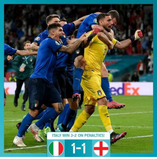 La Azzurra tuvo su noche soñada y atrapó la Eurocopa, la segunda de su historia y que hacía 53 años que no la encontraba. La final fue un 1-1 en los 120', con la ventaja de los ingleses con Luke Shaw e igualó Leonardo Bonucci. Después, en la tanda Gianluigi Donnarumma se hizo enorme: atajó dos para el 3-2 final y ser campeón.