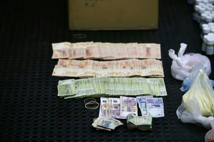 Las medidas judiciales incluyeron en una conocida farmacia céntrica, desde donde se desviaban los precursores y sustancias químicas utilizadas, teniendo el propietario una participación activa en la organización.