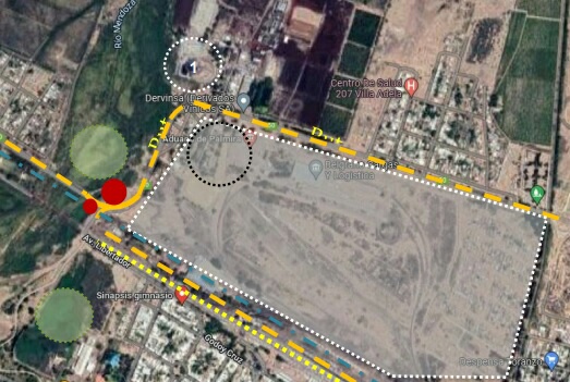 Es por esto que las obras principales se ubicarán en la intersección en “T” de la Ruta Provincial 50 y Avenida San Martin, continuación Avenida Libertador, donde se sitúa el puente de hierro, las vías ferroviarias, dos plazas públicas con churrasqueras, dos paradas de ómnibus enfrentadas de un lado y otro de la calle. Además, en el entorno inmediato se emplaza el Belgrano Cargas y la aduana en el predio de lo que fue la estación del ferrocarril, la industria de derivados vínicos, un colegio y una ciclovía inconclusa.