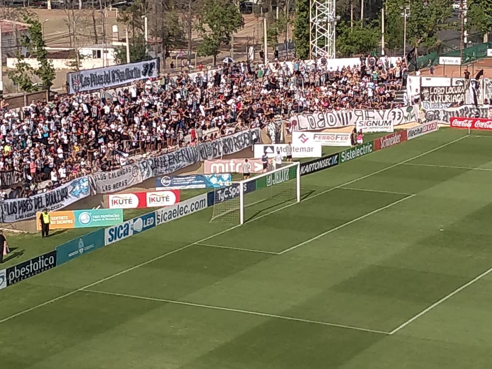 Un primer tiempo que tuvo pocas emociones, con el "Lobo" atacando por los costados y enviando centros para sus delanteros en donde tuvo dos veces para anotar el gol a través de Matías Nouet cuyas ocasiones fueron malogradas. En tanto que la visita se replegó bien en el fondo, atacaba cuando los jugadores mensanas erraban en los pases y además su arquero Lucas Bruera se demoraba en sacar lo que generaba silbidos por parte del público y protestas por parte de los jugadores locales.