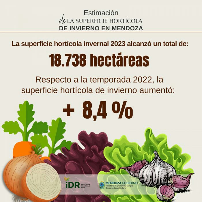 Según un informe elaborado por el Instituto de Desarrollo Rural (IDR), dependiente del Ministerio de Economía y Energía, la superficie hortícola de invierno en la provincia registró un incremento de 8,4% en relación con la temporada 2022.