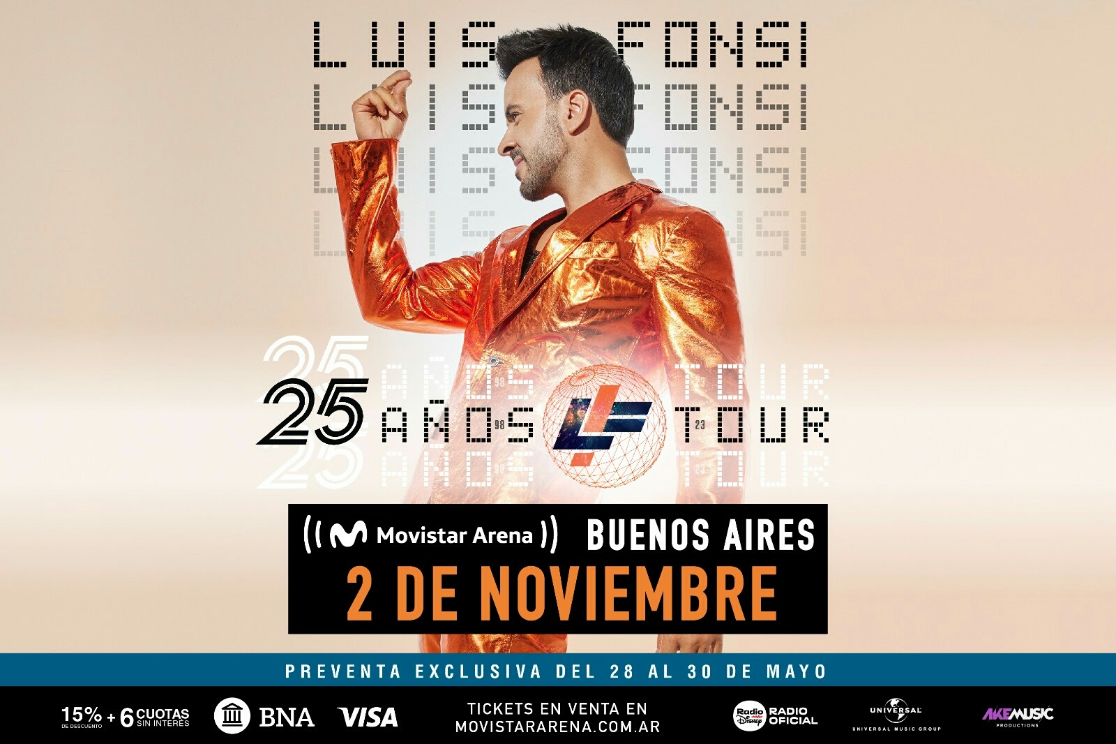 El puertorriqueño celebra los 25 años de su carrera en un tour muy especial, que hará bailar y cantar a los argentinos, el sábado 2 de noviembre, con una renovada propuesta en escena, para conmemorar este importante aniversario.