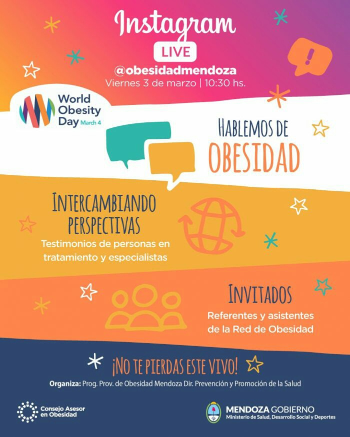 campaña de concientización en sus redes sociales. Para ello, invita a participar en la campaña a toda la comunidad este 4 de marzo, compartiendo acciones transformadoras en sus redes sociales. Las personas interesadas lo pueden hacer acompañando estas acciones con una foto o video con el símbolo de la campaña. IG: obesidad mendoza,
