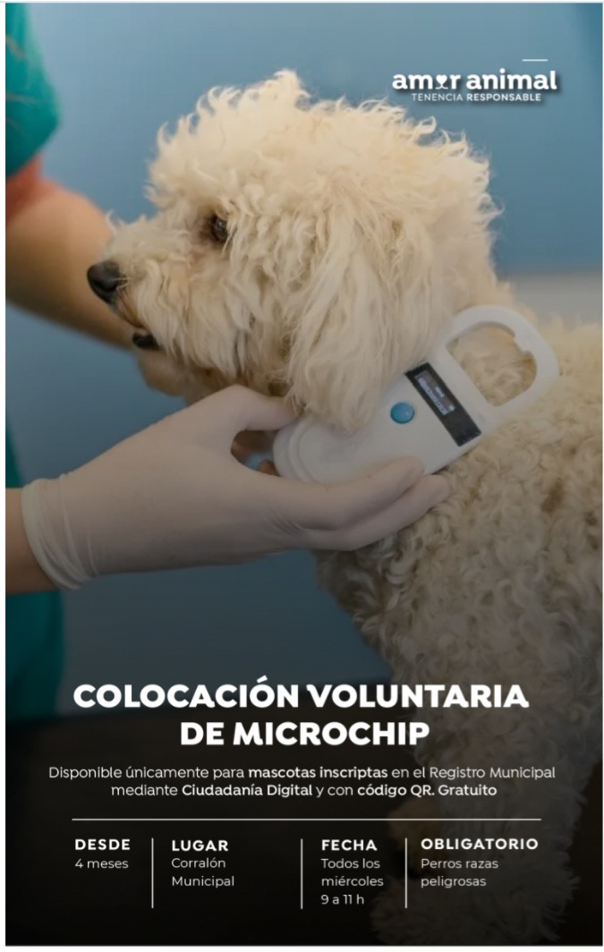 Actualmente, se está realizando la colocación voluntaria del microchip de identificación en perros y gatos a partir de los 4 meses de edad, sin importar la raza. Asimismo, es gratuita sólo para las mascotas que se encuentren registradas en el registro municipal. A través de Ciudadanía Digital se obtiene el código QR correspondiente.