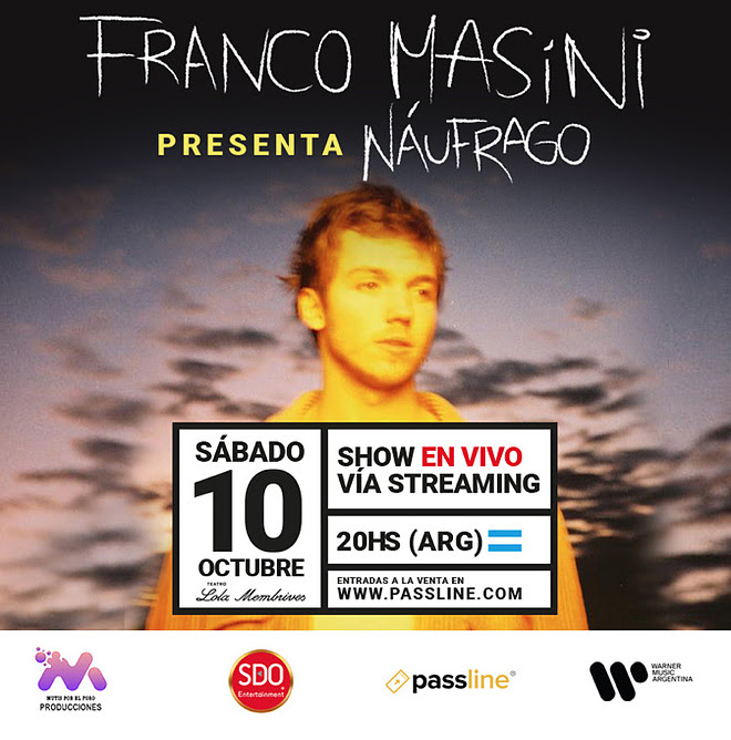 Con el lanzamiento de su nuevo EP Náufrago que sale este viernes 18 de septiembre, Franco Masini anuncia la primera presentación de su nuevo trabajo discográfico junto a todas sus grandes canciones en un show en vivo que se transmitirá vía streaming desde el teatro Lola Membrives el sábado 10 de octubre.