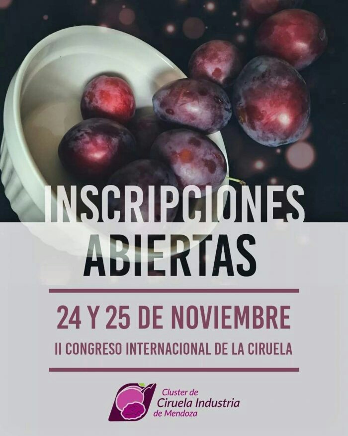 El Ministerio de Economía y Energía, a través del Instituto de Desarrollo Rural (IDR) y el Clúster Ciruela Industria Mendoza, invita a participar en la segunda edición del Congreso Internacional de la Ciruela Mendoza.