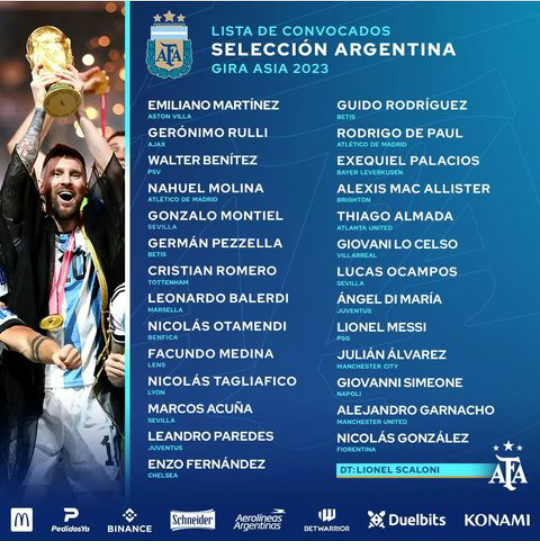 Se oficializó la planilla definitiva para esos amistosos, que cuenta con la mayoría de los futbolistas campeones del Mundo, más la inclusión de Alejandro Garnacho y Leonardo Balerdi. También sorprende el regreso de Lucas Ocampos, de buen momento en Sevilla.