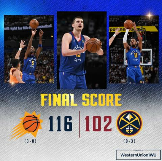 Los Suns ahora buscan un triunfo en el juego del domingo, desde las 21 de Argentina, para cerrar su pase a la final de la Conferencia. Los Nuggets apostarán a una victoria que estire el cierre, pero su panorama es muy difícil ya que nunca un equipo logró levantar un 3-0 en el global.