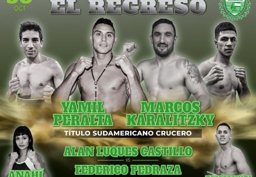 Por un lado, Alan Isaías Luques Castillo enfrentará por la corona pluma a Federico Sebastián Pedraza y, en la pelea estelar, Yamil Peralta combatirá con Marcos Karalitzky por la faja crucero. Además, contará con cinco contiendas más. Televisará TyC Sports.