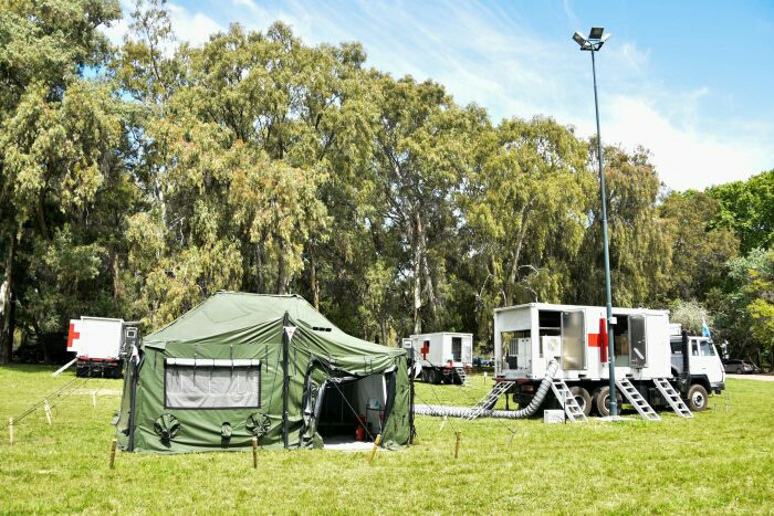 El ejercicio, a cargo del Ejército Argentino, se desplega en varios escenarios. El Hospital Militar Reubicable y el Centro de Evacuados está ubicado en el Parque General San Martín y en el lago se instalan equipos de ingenieros para la potabilización de agua. En tanto, en los alrededores de la avenida San Francisco de Asís se desarrollará un simulacro de descontaminación de material peligroso.