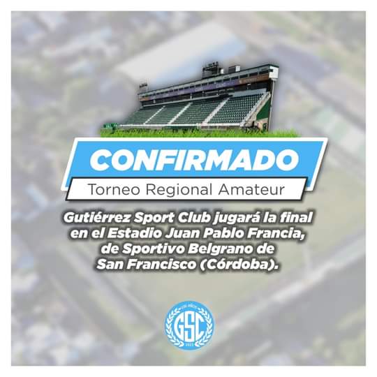 Gutiérrez ya sabe la sede en donde jugará la final por el ascenso al Federal "A". La organización del Torneo Regional Amateur comunicó los estadios en donde se jugarán los cruces definitivos