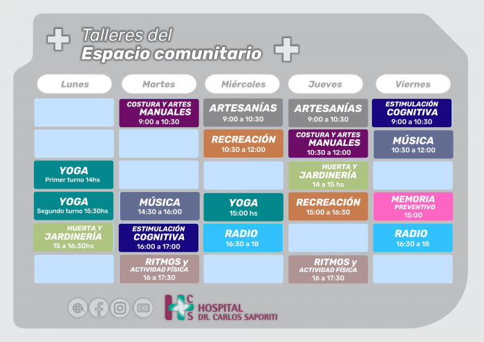 El Hospital Carlos Saporiti cuenta con un espacio comunitario recreativo, formativo y de acompañamiento a los pacientes del Servicio de Salud Mental. El servicio está abierto también al público en general.